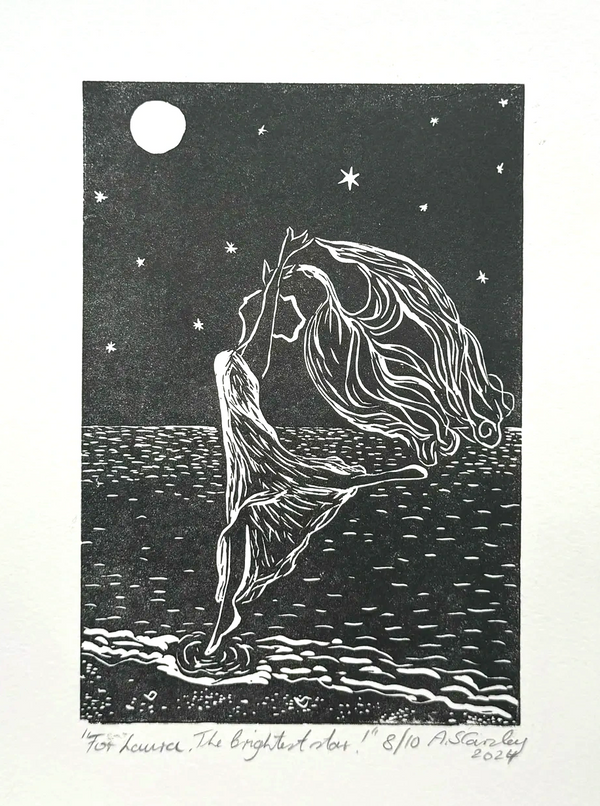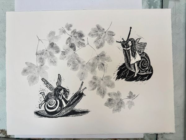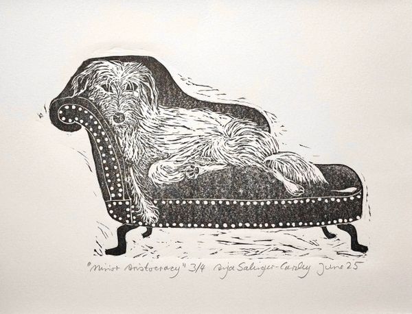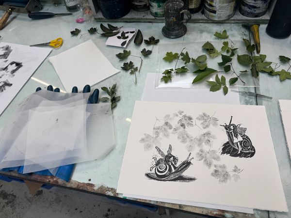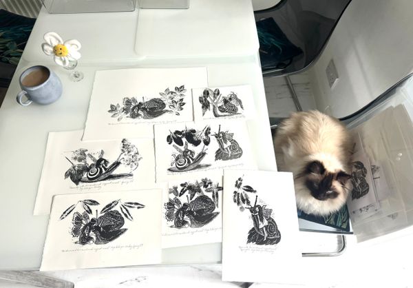 With a lifelong passion for art and printmaking technologies, an extensive collection of historic etchings and engravings accumulated over decades, as well as about 25 years of working in the print-publishing industry - in October 2019 I finally took my first class in relief printing, and I have been hooked ever since! I’ve been a full member at the Edinburgh Printmakers for nearly 3 years now, and joined its Board of Trustees in Dec 24. I have experimented with reduction and jigsaw woodcut and linocut, tried wood engraving and most recently copperplate etching and also drypoint – but so far keep returning to single colour linocut as I love both the look of the outcome and the immediacy of the process.